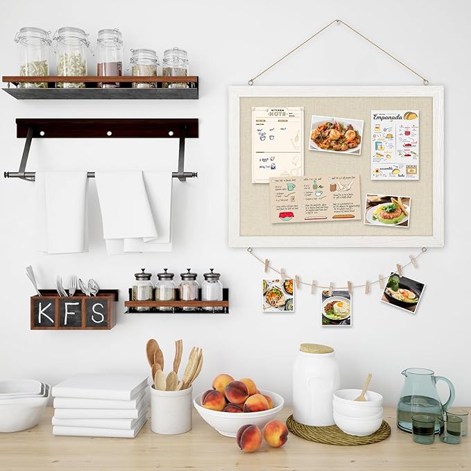 - 【Multi-function Decoration 】DOLLAR BOSS linen corkboard is a good choice of decorating your home, office, and kitchen. As a bulletin board to pin notes, messages and plan, as a vision board to post photos, and pictures. It's decorative and practical as notice board and memo board.