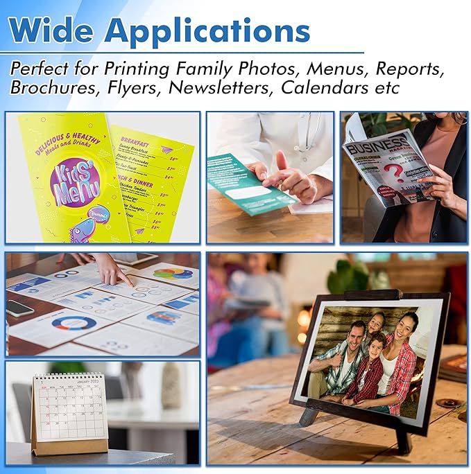 - Perfect ideal for printing your photos and designs. Use for Printing Family Photos, Menus, Reports, Brochures, Flyers, Newsletters, Calendars etc. No watermark on the back, leaving you to record or write