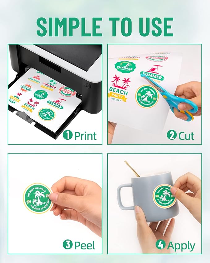 - 【SIMPLE TO USE & SUITABLE THICKNESS】This kind of printable vinyl paper is simple to use.Just print out your design, cut them, then you can apply to the smooth & hard surfaces, plastic, glass, wood and metal. The thickness of the decal paper is 4mil, which reduces the rate of paper jam. It has a good texture to use and a longer adhesion life, can be well-integrated with the project. You can seal stickers with a clear acrylic spray or apply UV protection to enhance the durability of stickers