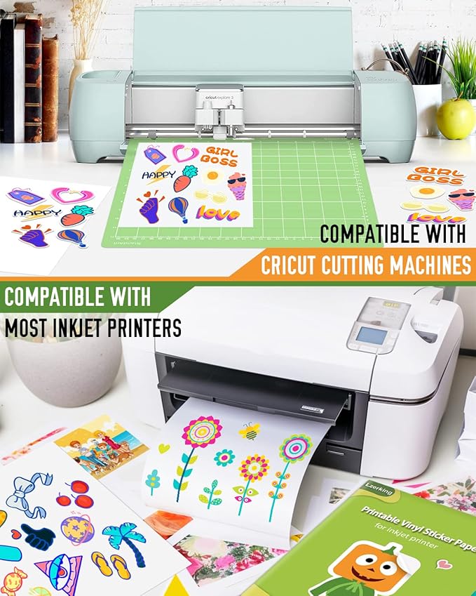 - 【COMPATIBLE WITH INKJET PRINTER AND CUTTERS】Inkjet Printable Vinyl is guaranteed to work perfectly with Inkjet Printer. Printable vinyl is compatible with Cricut and other cutting machines. The ink can Dry Quickly within a few minutes. Perfect for crafts and projects and the ink doesn’t bleed