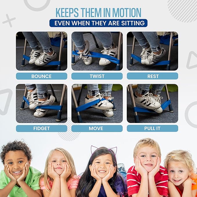 - Easy to use and install: Simply stretch the chair bands for kids with fidgety feet around the legs of a chair or desk to set up. They're durable and flexible, fitting most standard classroom chairs without slipping or sliding during use.