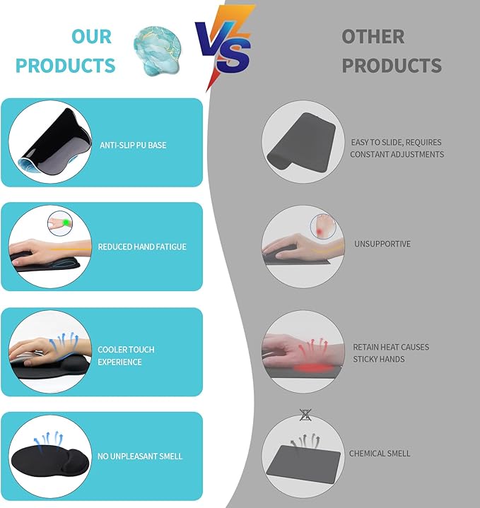 - đ˘ăErgonomic DesignăGel mouse wrist pad are designed with ergonomics in mind, providing a natural and comfortable posture for your wrist. This can help prevent long-term injuries like carpal tunnel syndrome and other repetitive strain injuries, ensuring that you can use your computer for longer periods with ease.