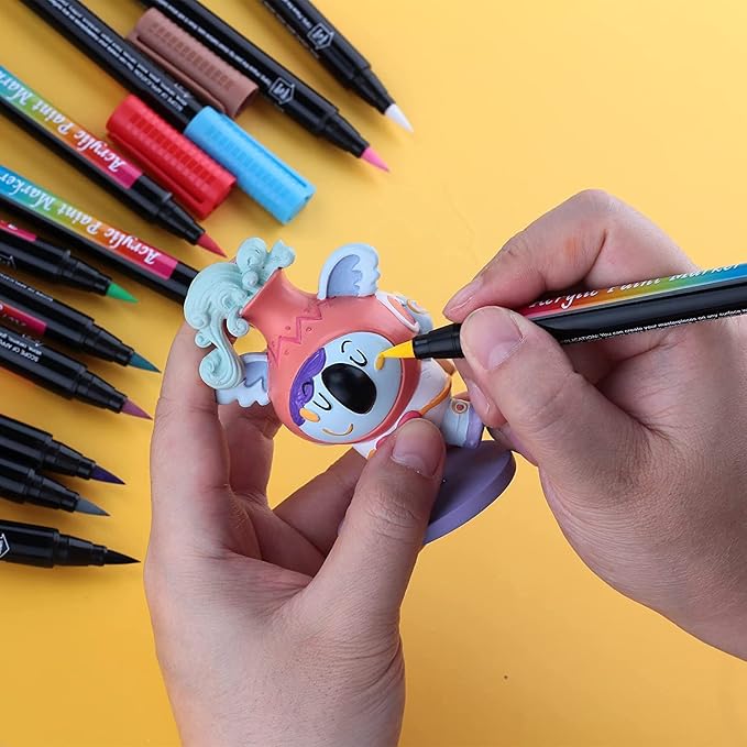 - Acrylic paint markers - PP material pen barrel, strong and durable, comfortable grip, suitable for long-time use. 1-6mm brush tip, you can freely use your creativity. Marker color cap, easy for you to store and find the color.