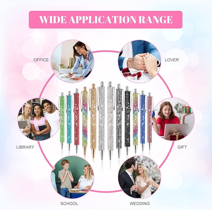 - What you will get: We have prepared a total of 12 rhinestone pens of different colors and 10 replacement refill in the package for you, rich quantity can meet your daily life use and change needs, exquisite production can also share with your family and friends and choose their own favorite color