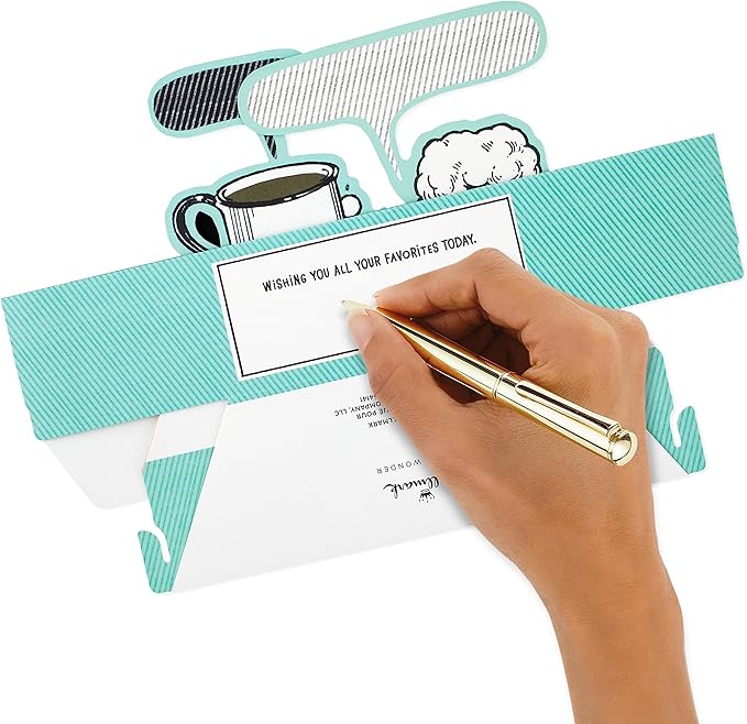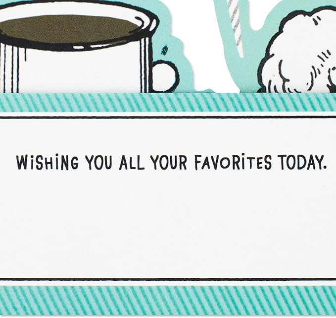 • Back of card reads: "Wishing you all your favorites today," and includes space for a brief message.