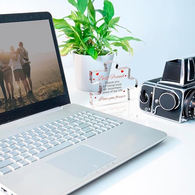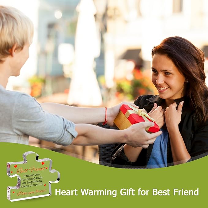 - π Nothing But The Best For Your Bestie: your best friend deserves nothing but the world. This premium puzzle piece boasts a unique design and is made of top-notch acrylic materials to ensure she will cherish it for years.