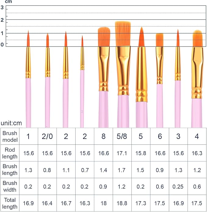 - 【All Sizes of Paint Brushes】: The 10 sizes of multi-functional pink brushes have various shapes, making the mixing color easier, which is very suitable for artists, students, teenagers, children and painters at all levels. Wonderful gift ideas for friends and family who like painting!