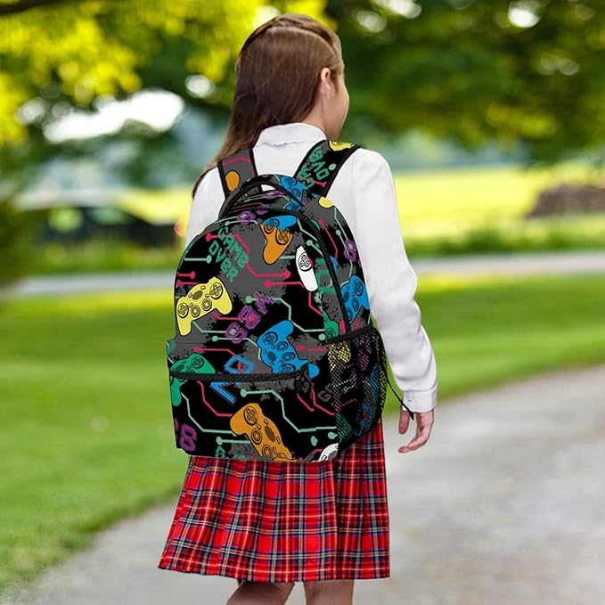 Fiokroo Colorful Game Joysticks Backpack School Bag For Students Teens Men Women Gamer Gamepad Laptop Backpacks Travel Daypack Bag With Multiple Pockets