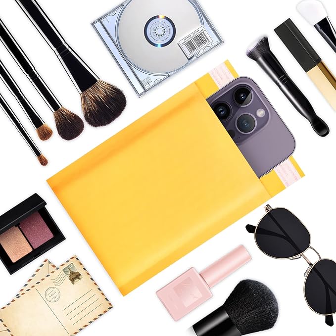 DaSen Kraft bubble mailers 4x7 Inch 100 Pack,Self-Sealing Paper Envelopes for Packaging,Strong Adhesion Envelope Mailers, Small Waterproof Cushioned Padded Shipping Bags Yellow #000
