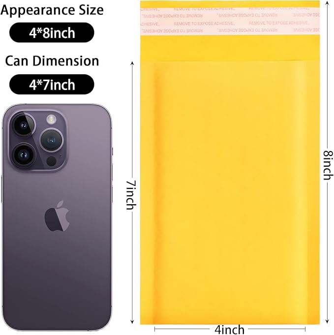 • Kraft Bubble Mailer Size :Outsize size: 4x8 inch, Usable size: 4x7 Includes 50 Kraft Bubble Envelopes.