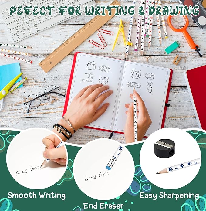 - Comfortable to Hold: The paw print pencils are made of wood, with a length of 7.5 inches, light in weight and easy to hold, very suitable for children to write, sketch, drawing, taking notes, completing tests, and making crafts so on