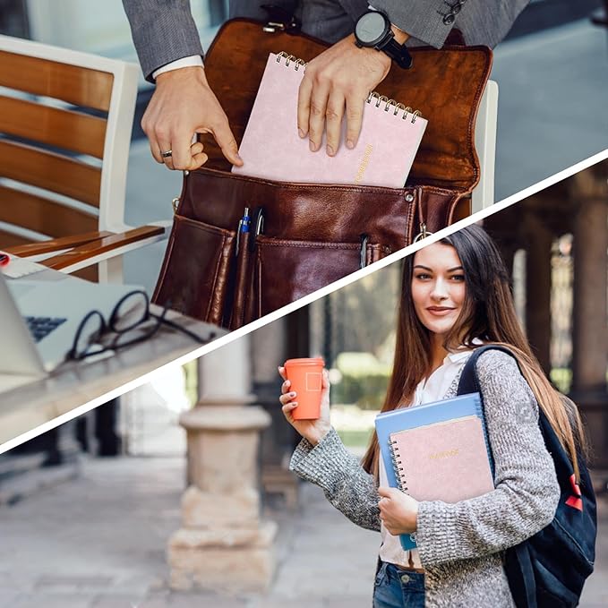 - 【Hardcover Spiral Notebook】: Can be used as a business notebook.With sturdy double spiral binding, it can be folded freely 360° without crease, also convenient for you to tear the pages. Also includes 160 pages of high quality interior paper, scratch pad, and line spacing of about 7mm, which meets most writing habits.