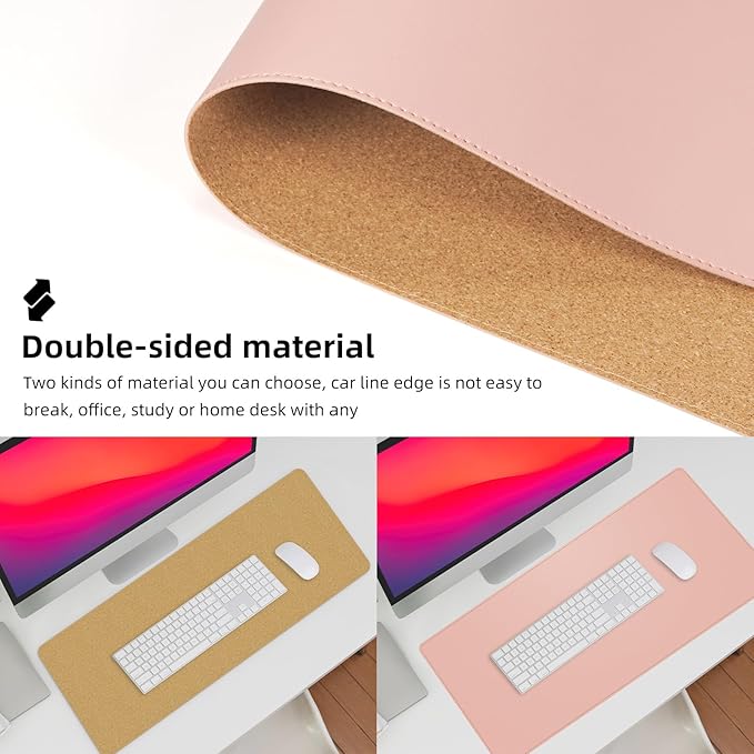 Leather Desk pad Protector, Large Desk mat with Natural Cork & PU Leather,Mouse pad,Non-Slip Office Desk Mat,Waterproof Desk Writing Pad for Office and Home (35in*17in, Rose Pink)