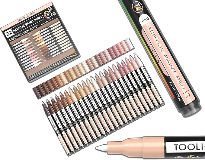 Acrylic Paint Pens 22 Skin Tones Assorted Pro Color Series Markers Set 0.7mm Extra Fine Tip for Rock Painting, Glass, Mugs, Wood, Metal, Canvas, Projects, Non Toxic, Waterbased, Quick Drying