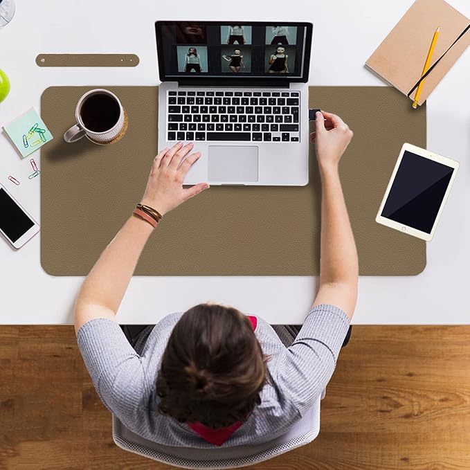 Boutilon Leather Desk Pad 35" x 17", Non-Slip, Waterproof PU Leather, Dark Apricot