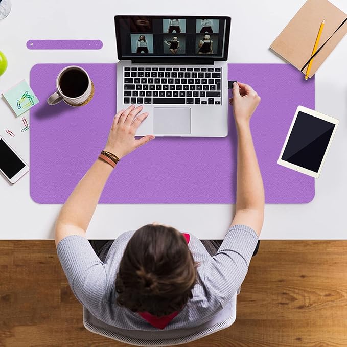 Boutilon Leather Desk Pad 35"x 17" Non-Slip Mouse Pad,Office Desk Mat,Waterprooft PU Leather Desk Blotter,Desk Pad Protector,Desk Writing Pad for Home Office Decor (L-Purple,35"x 17")