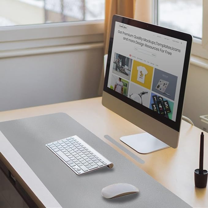 Boutilon Leather Desk Pad 35"x 17" Non-Slip Mouse Pad,Office Desk Mat,Waterprooft PU Leather Desk Blotter,Desk Pad Protector,Desk Writing Pad for Home Office Decor (L-Silver,35"x 17")