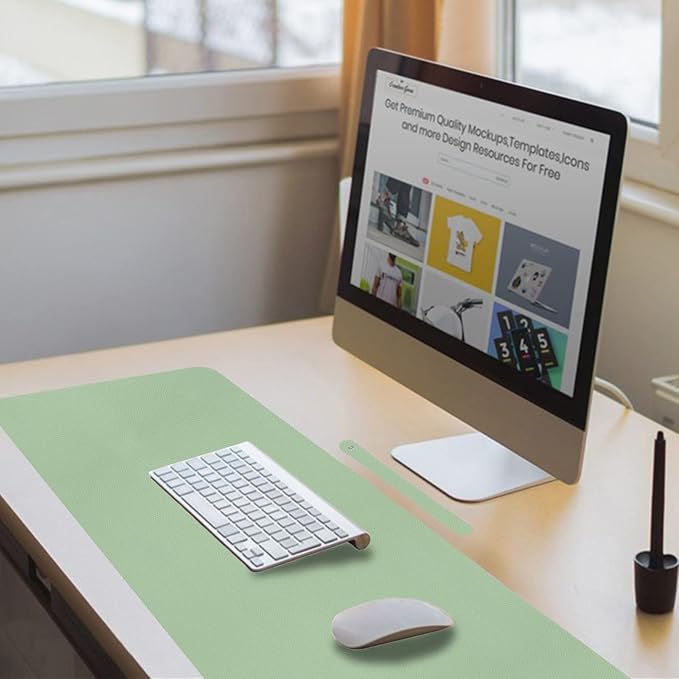 Boutilon Leather Desk Pad 35"x 17" Non-Slip Mouse Pad,Office Desk Mat,Waterprooft PU Leather Desk Blotter,Desk Pad Protector,Desk Writing Pad for Home Office Decor (L-Green,35"x 17")