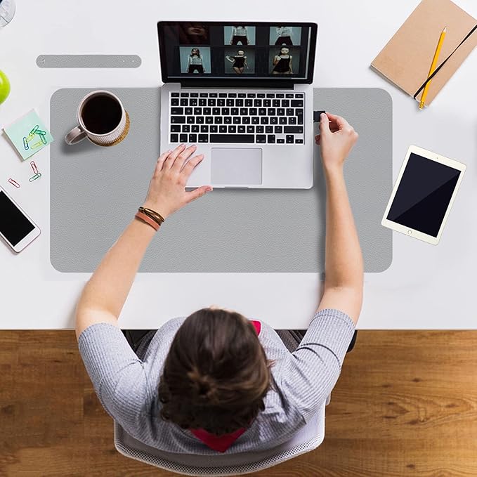 Boutilon Leather Desk Pad 24"x 14" Non-Slip Mouse Pad,Office Desk Mat,Waterprooft PU Leather Desk Blotter,Desk Pad Protector,Desk Writing Pad for Home Office Decor (S-Grey)