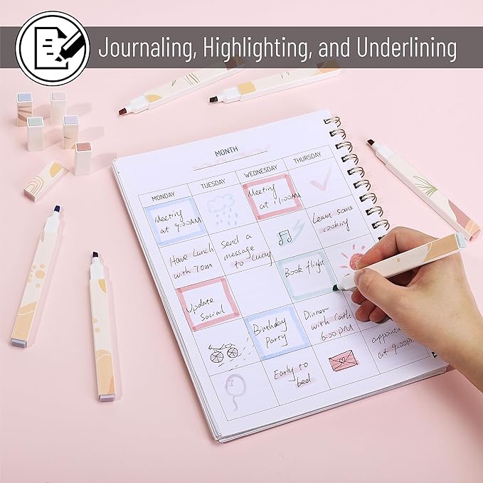 - Make your notes and papers pop with our soft and gentle highlighters! This package includes 6 highlighters in non-neon, assorted colors with vintage design on barrel.