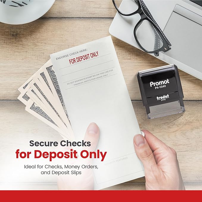 - Stand-Out Impressions: The self-inking stamp features the phrase "for deposit only" in bold red ink to provide clear and easy-to-read impressions that stand out prominently on any paper with no bleed-through. Impression size is 9/16 x 1 1/2 inches.