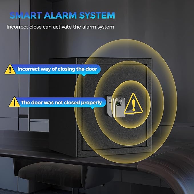 - High-Precision Fingerprint: WASJOYE fingerprint safe adopts high-tech semiconductor sensor, which has higher authentication accuracy than ordinary optical fingerprint sensor and can register up to 32 fingerprints (false recognition rate ≤ 0.001%)