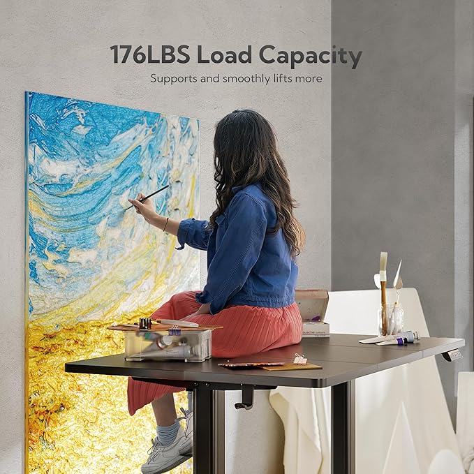 - Ergonomic Workspace: Spacious 63” x 24” adjustable desk desktop offers a roomy setup.