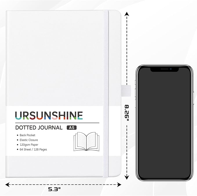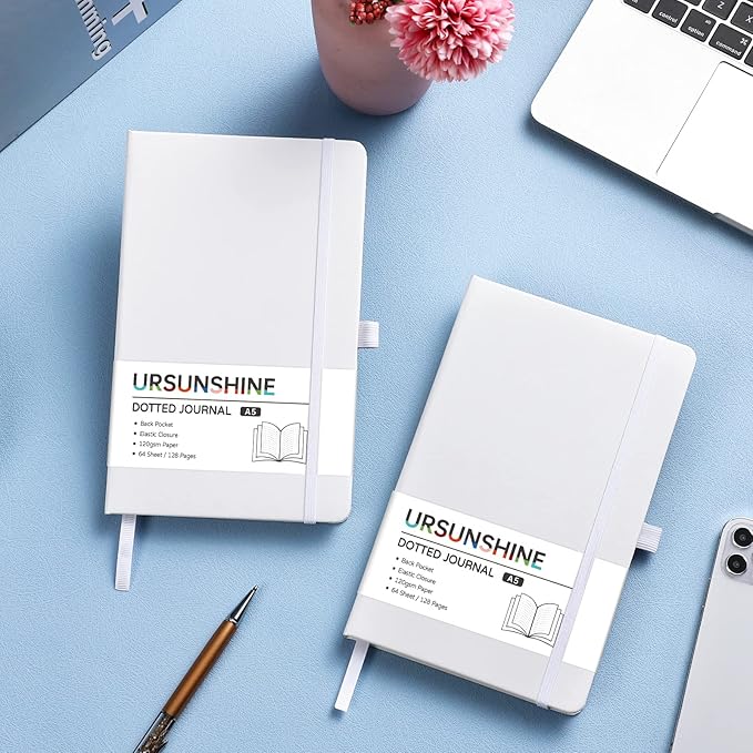 - PREMIUM THICK PAPER - 120 gsm dotted paper, our notebook journal is made of high quality acid free paper to help prevent from damages of light and airs to keep notes on the pages clearly. There are 128 pages/64 sheets in this ruled journal, which provide you with plenty space for planning or scheduling.