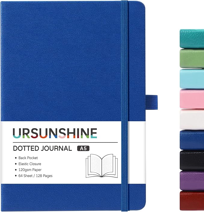 - Style : Hardcover notebook with smooth faux leather cover, 5.3'' x 8.26'' size, and dotted pattern. It has a pen loop, inner pocket, elastic closure, is designed to lay flat firm thread-bound pages. Hardcover notebook with smooth faux leather cover, 5.3'' x 8.26'' size, and dotted pattern. It has a pen loop, inner pocket, elastic closure, is designed to lay flat firm thread-bound pages.