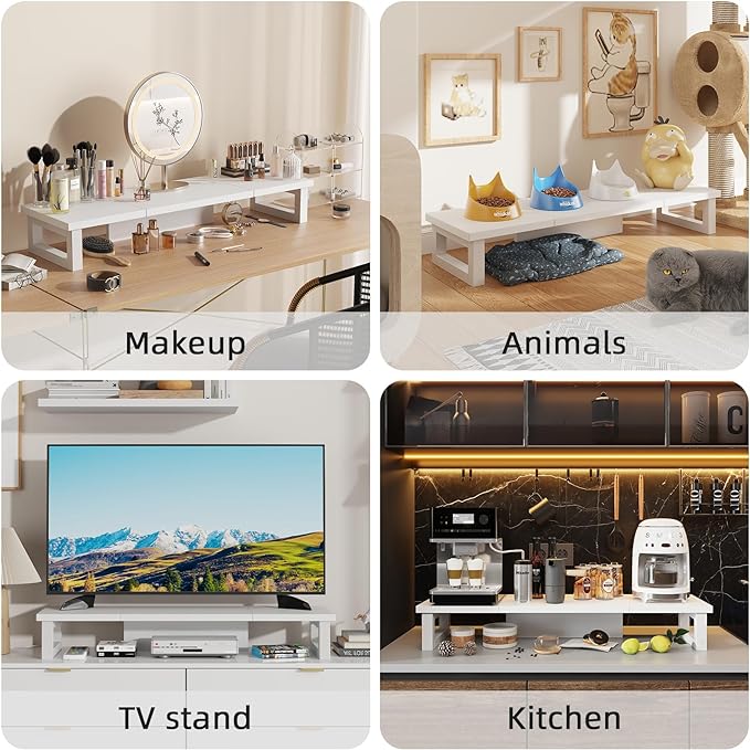 - 【Multifunctional Monitor Riser 】The monitor stand has powerful storage function of keeping the table clean.It can be used as a monitor stand riser, printer stand, laptop riser, or a TV stand, makeup, animals. Extra storage space underneath organize your office supplies.