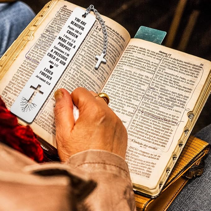 - Motivational Christian Bookmark for Women Men: Bible Quotes Gift Bookmark for Her, Featuring the encouraging bible verses, A religious bookmark with its cross pendant to mark the page makes a nice gift for church members, women, ladies, BFF, Friends, book lovers, family members, daughter, mom, and anyone who enjoys reading.