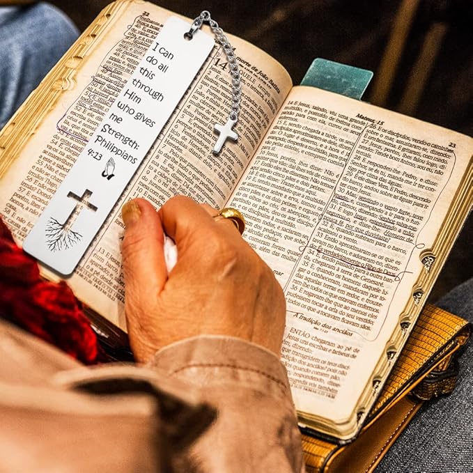 - Motivational Christian Bookmark for Women Men: Bible Quotes Gift Bookmark for Her, Featuring the encouraging bible verses, A religious bookmark with its cross pendant to mark the page makes a nice gift for church members, women, ladies, BFF, Friends, book lovers, family members, daughter, mom, and anyone who enjoys reading.