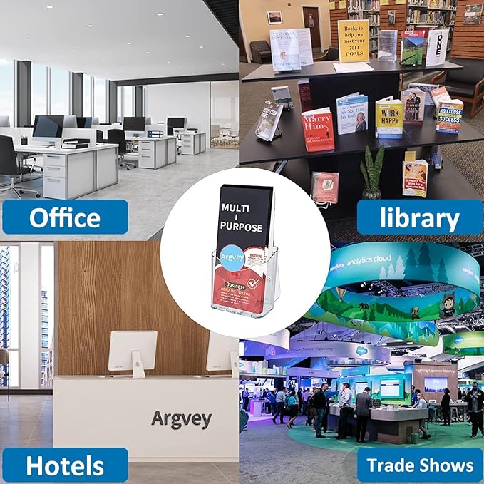 - ๐๐ข๐๐ ๐๐ฉ๐ฉ๐ฅ๐ข๐๐๐ญ๐ข๐จ๐ง๐ฌ - Clear plastic pamphlet holder stands are perfect for displaying 4 inches wide trifold brochures, from Exhibitions and Trade Shows, Offices to showrooms, waiting rooms to reception areas, restaurants to hotels, etc. Make your home office life more convenient and organized.