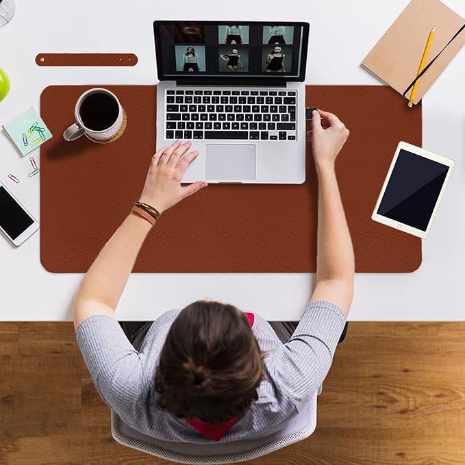 Boutilon Leather Desk Pad 35"x 17" Non-Slip Mouse Pad,Office Desk Mat,Waterprooft PU Leather Desk Blotter,Desk Pad Protector,Desk Writing Pad for Home Office Decor (L-Brown,35"x 17")