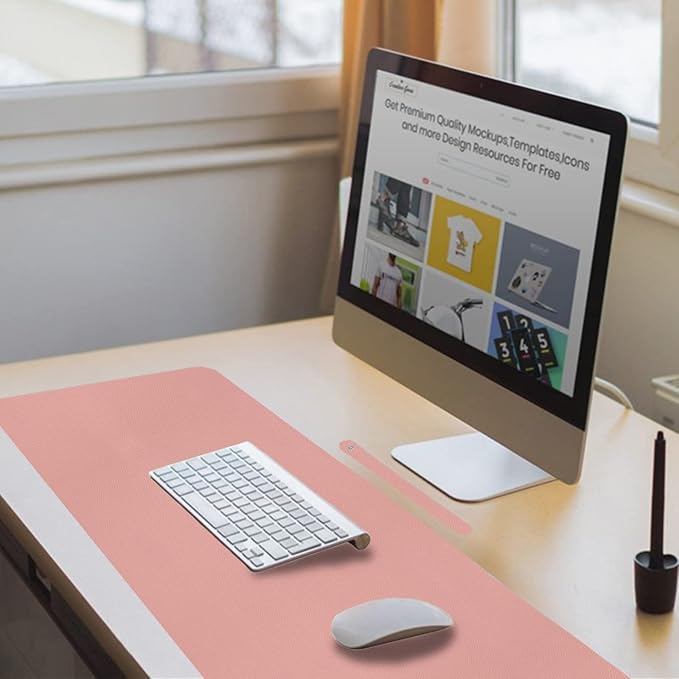 Boutilon Leather Desk Pad 35"x 17" Non-Slip Mouse Pad,Office Desk Mat,Waterprooft PU Leather Desk Blotter,Desk Pad Protector,Desk Writing Pad for Home Office Decor (L-Pink,35"x 17")