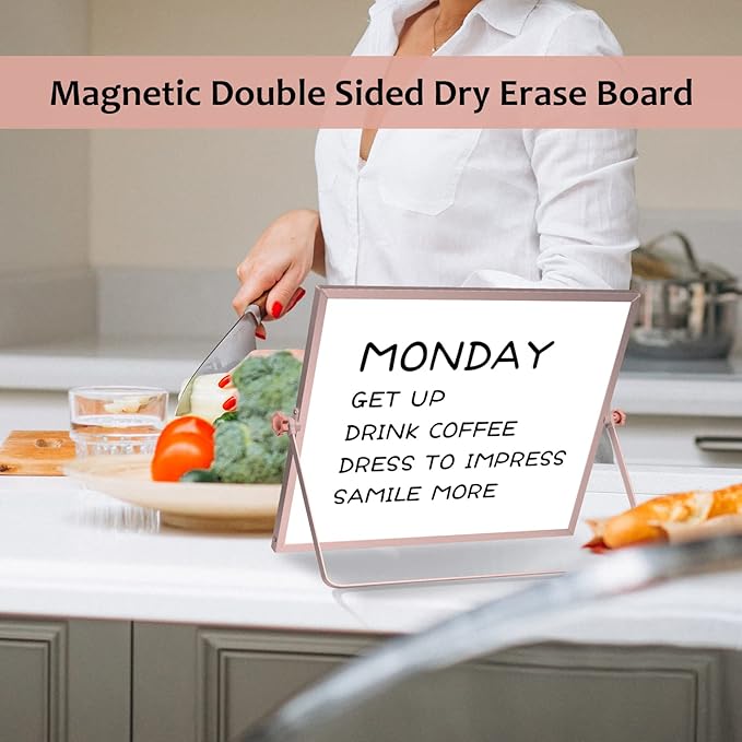 16 x 12 inches Dry Erase Whiteboard, Rose Gold Magnetic Desktop Double-Sided White Board with Stand, 10 Markers, 1 Eraser, 4 Magnets, Portable Whiteboard Easel for School Office Home