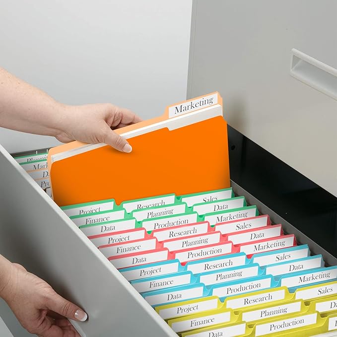 - Easily Distinguishable Design - For easy organization and quick retrieval of documents. The 1/3 cut tabs (equal number of left, right, and center tabs) make it easy to label the folders with meaningful titles and to sort your files by category, date, or priority without obscuring your hanging file tabs.