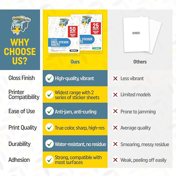 Clear Printable Vinyl for Inkjet Printer - Waterproof, 25 Sheets - Transparent Inkjet Printable Vinyl Sticker Paper Avoid Jams