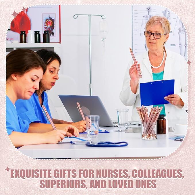 Zonon 12 Pieces Inspirational Pens Bulk Easter Basket Stuffers Motivational Quotes Ballpoint Pens with Stylus Tip Inspirational Gifts for School Office Teachers(Rose Gold,Nurse Style)