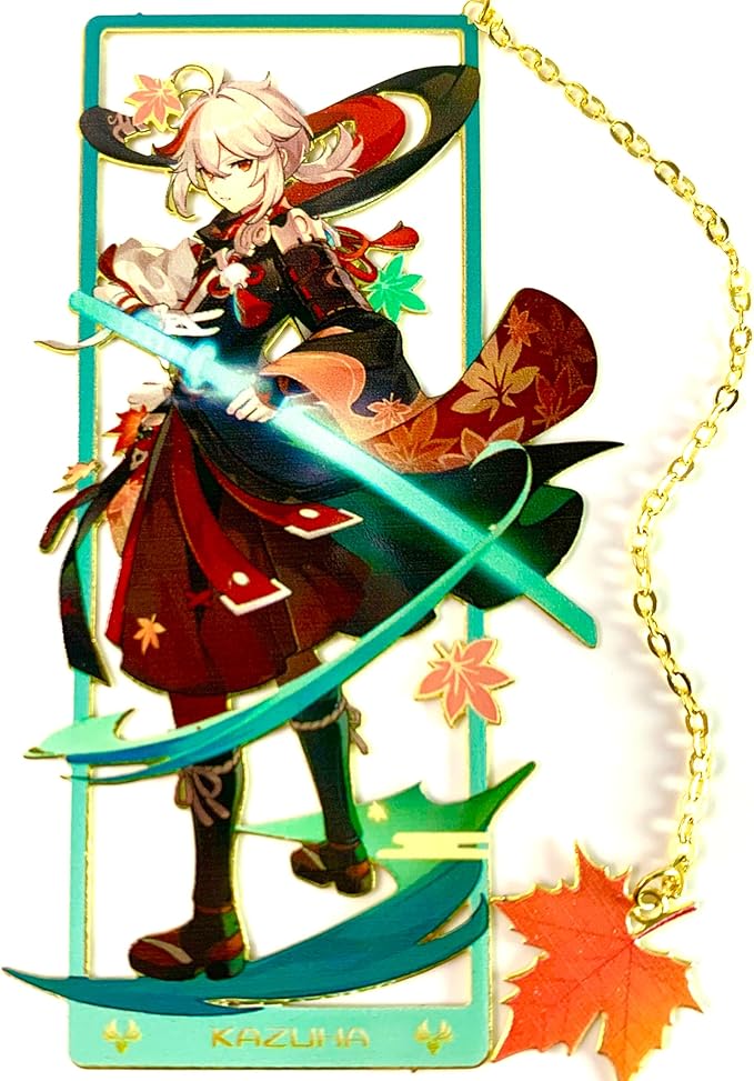 - Immerse yourself in the world of Genshin Impact with these exquisite Kazuha brass bookmarks, featuring a Quadratic element design inspired by the popular anime game.