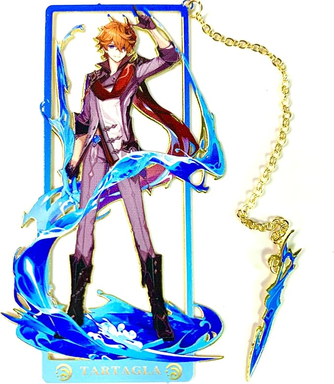 - Dive into the thrilling world of Genshin Impact with these exquisite Tartaglia brass bookmarks, featuring a Quadratic element design inspired by the popular anime game.