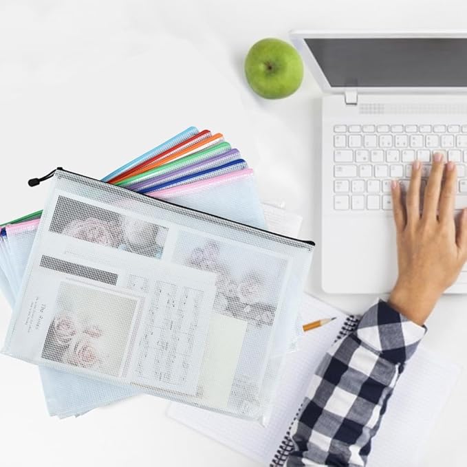 - PACKAGE INCLUDES : 22 pcs 16.9" x 12"/43cm x 30cm plastic zipper folder file and Label sticker.A3 Size of the mesh document bags with Zipper is 16.9*12 inch.The attached notes can not only classify clearly, but also help you find documents quickly.