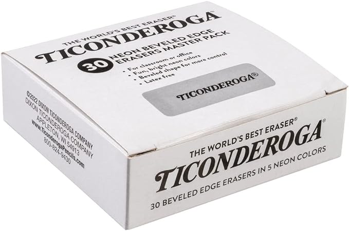 Ticonderoga Wedge Erasers, Neon Colors, 30 Count, Class Pack