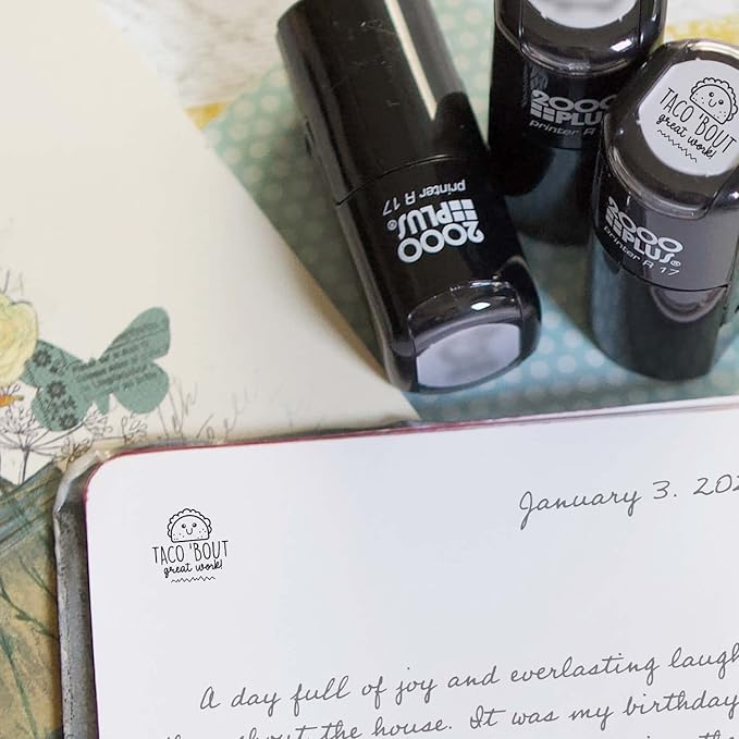 • Design: Stamp incorporates the phrase, "Taco 'Bout Great Work" with an adorable happy taco illustration. Give your stamp of approval for a nice job done! Stamp this cute taco impression on homework, projects, school tests, and more. Perfect for teachers, daycare and homeschool.