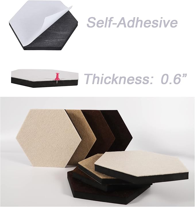 - 1. Size and Material - The size of the bulletin board is 7.0 × 6.1 inches. Each hexagon board is 0.6 inches thick, The pin won’t poke through the board. The surface of the felt board is covered with felt and the back is made of EVA, sturdy and lightweight.