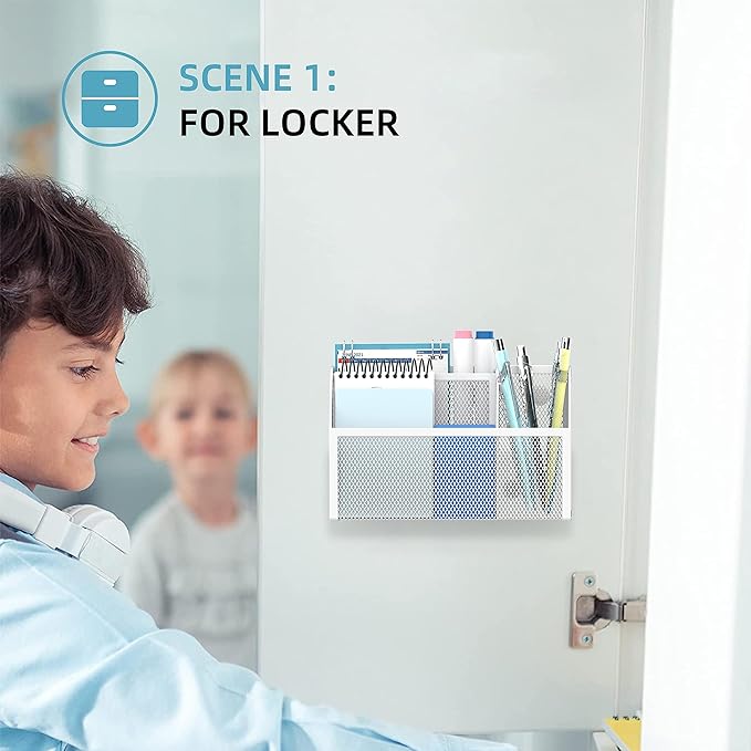 - [Multifunctional Magnetic Fridge Organizer ] This magnetic locker organizer is specially designed for various scenarios. Can be used as a magnetic pencil holder cup, magnetic marker holder, magnetic school locker organizer, or magnetic pencil holder basket. Perfect for home, kitchen, office, workplace, school, restaurant, etc.
