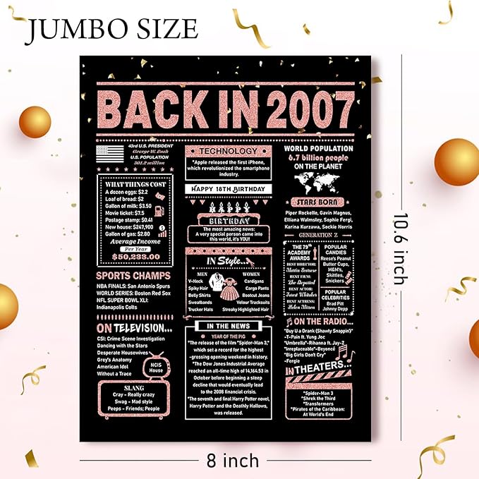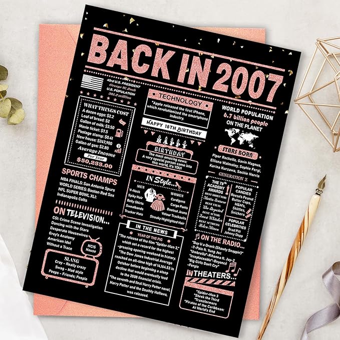 18th Birthday Card, 18th Birthday Decorations for Girls, 18th Birthday Gifts for Daughter, Back in 2007 Birthday Card, Rose Gold