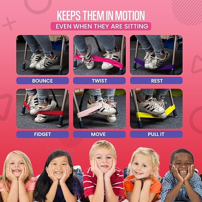 - Easy to use and install: Simply stretch the chair bands for kids with fidgety feet around the legs of a chair or desk to set up. They're durable and flexible, fitting most standard classroom chairs without slipping or sliding during use.