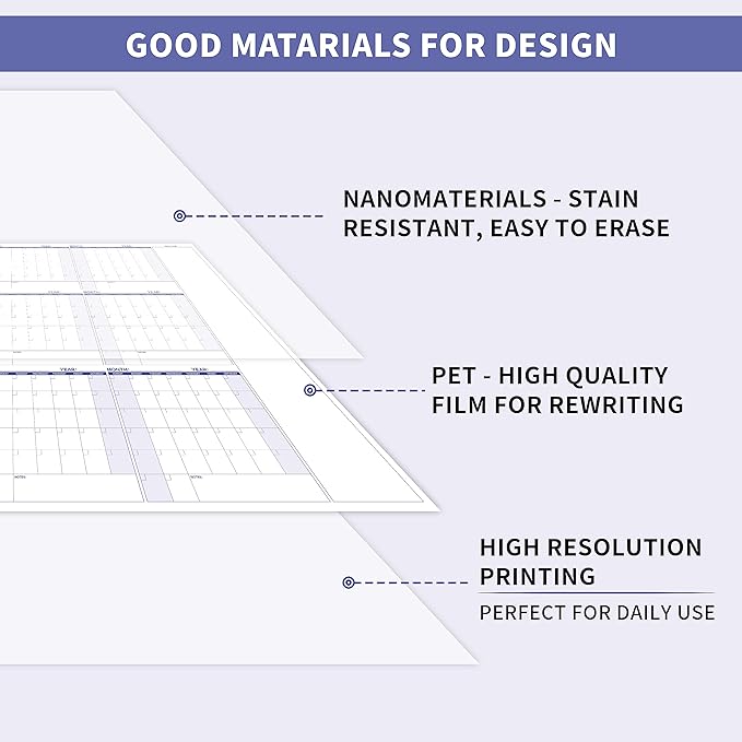 - π UNIQUE FEATURES β This reusable calendar uses special treated dry erase reusable οΌ rewritable, giving smooth surface, well dust-proof and wipe very clean. Bright simple background and clear printing make it easier to view and read. This undated wall calendar applies to many kinds of wet/dry erase marker, etc.