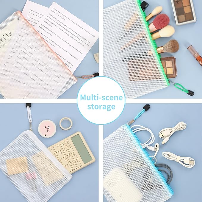 - 【100 Different Purposes】: Multi-size mesh zipper storage pouches can be used for documents, toiletries, bills, receipts, photos and etc. Some sizes can be used to store travel items such as toothbrushes, cosmetics and jewelries.